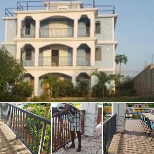 This February, we were able to switch out our temporary wooden railings with metal railings. Team Toro (who came in May 2015) helped provide safety to our Guesthouse by installing wooden railings outside on all our decks/balconies. Because of the rain and harsh weather in Haiti we knew it would be wise to save up money and when the time came...we'd update to metal. Gama employed a welder and other workers to replace all the wooden railings and cover coat them in paint. Thanks to our supporters, we know these metal railings will last even longer as they stand against the weather in Haiti.