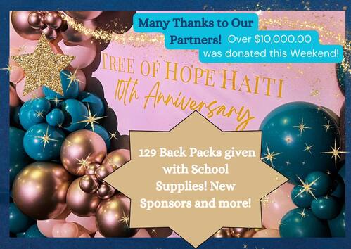 This year’s Haiti Banquet was a huge success and over $10,000 dollars was raised. We had many New Child Sponsors, a total of 129 Backpacks filled with school supplies, birthday gifts, new faces, and lots of memories as we glorified God!