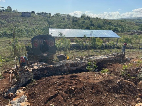 Work continues at Hope Farm, where a few more rows of blocks were added to the chicken coop’s foundation. Construction also began on a nearby storage building, which will include two rooms—one to provide shelter for the chicken caretaker, and another to store supplies and tools. Although the rainy season has slowed things down, steady progress is being made!