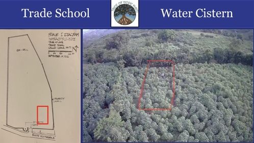 The red rectangle pictured above represents the location on our land where we will dig the Water Cistern underground and it will also function as our parking lot when The Trade School is up and running.